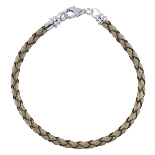 Slider bead charm bracelet. An easy on and easy off removable end cap allows ability to add or remove beads or charms from this chain quickly and easily. Ideal for slider beads and Pandora style bead charms.. Specifications: Sterling Silver, Pearl Color Leather, Lobster Clasp, 7.5 Inches, 3mm. FROLIC Sterling Silver Pearl Leather 3mm Braided Cord Bracelet - 7.5 Inches