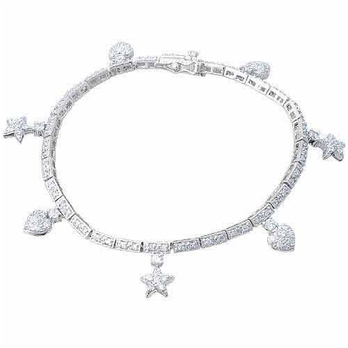 A sparkling beauty this cz bracelet. CZ hearts and stars dangle away ready to enhance your collection.