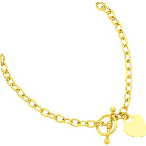 This captivating Gold Toggle Heart Charm Bracelet displays a luminous heart, accented in 14K Yellow Gold. Approximate Gold Weight: 4.10 Grams. This bracelet is 7.50 inches in length. The fine finishing with lobster lock, exaggerates the beauty of the bracelet.,METAL:14K Gold,ACTUAL METAL:14K Yellow Gold,CLASP:Toggle Clasp,LENGTH:7.50 in,COLOR:Yellow,GENDER:Womens,PRODUCT TYPE:,MATERIAL:Others