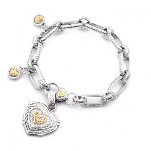 Bling Jewelry Designer Inspired Heart Classic CZ Sterling Silver Charm Bracelet 7.5" Reviews