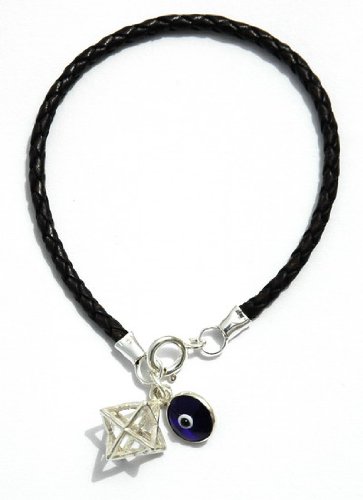 This is a beautiful unisex 925 Sterling Silver Merkaba and Evil Eye charm combination of charms on a braided leather bracelet. The Merkaba is a very powerful tool for protection and healing. The bracelet is a standard size 7" and can be ordered at different lengths at no additional cost - please use the comment field to specify a special size