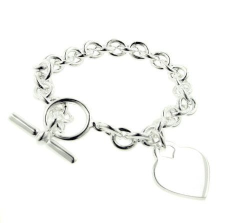 Heavy Sterling Silver Rolo Heart Charm Toggle Bracelet - 6.5" Reviews