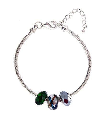 "Pandora" Style Starter Bracelet + 3 Beads - 8.25" (21 cms) - Silver Tone Metal ~ Emerald Green and Silver (FB117) Reviews